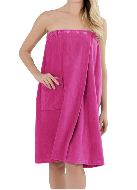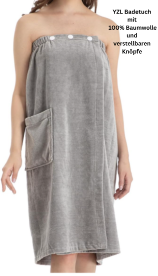 Dank der verstellbaren Knöpfe lässt sich das Badetuch sicher und bequem um den Körper wickeln – ideal für Sauna, Spa, Fitnessstudio oder Zuhause. Es bleibt zuverlässig an Ort und Stelle und bietet dir maximale Bewegungsfreiheit bei vollem Komfort.